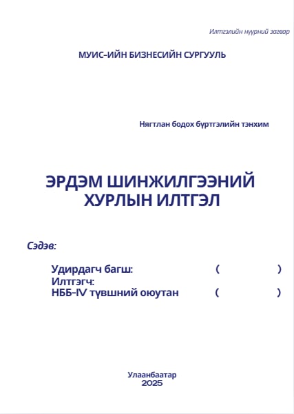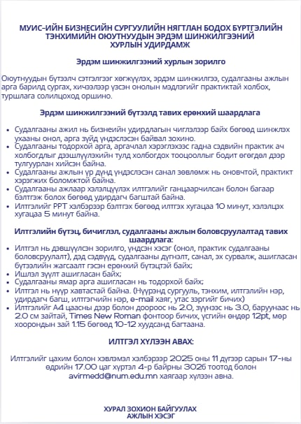НББ- ийн тэнхимийн Оюутны Эрдэм Шинжилгээний хурлын удирдамж