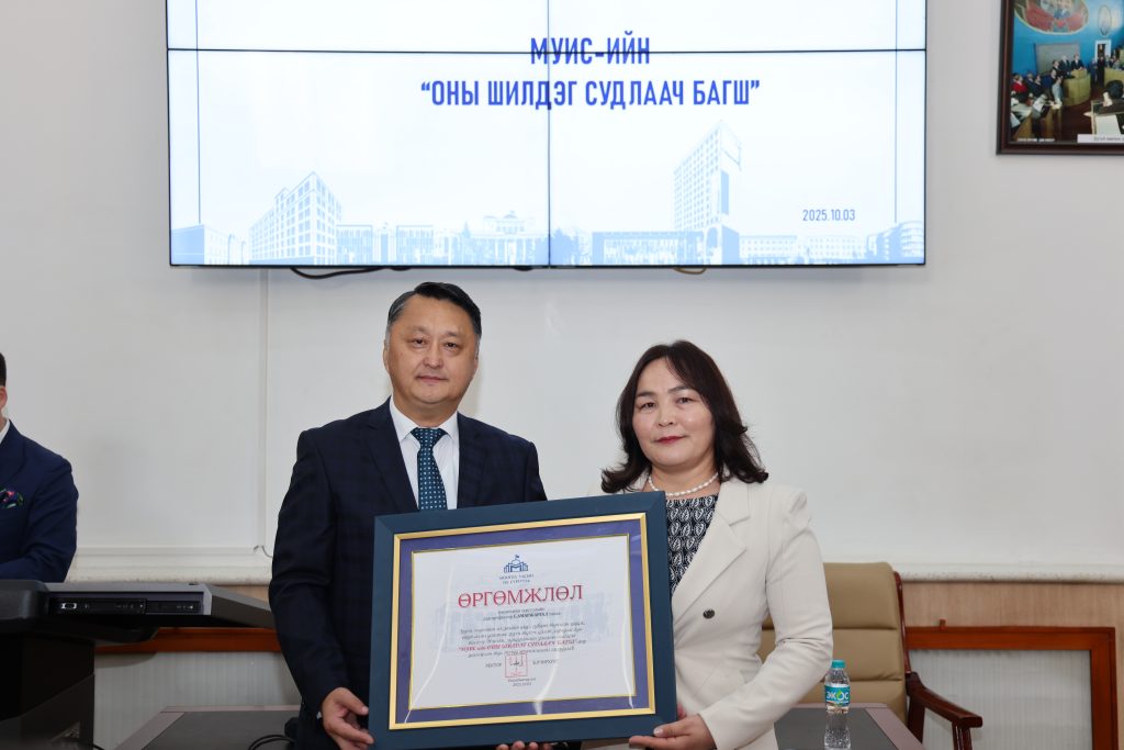 The prestigious awards were presented by Professor B. Ochir-Khuyag, President of the National University of Mongolia, in recognition of the recipients’ outstanding academic achievements, research excellence, and dedication to advancing education and scholarship.